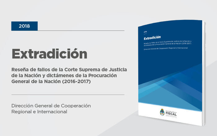 La Dirección General de Cooperación Regional e Internacional (DIGCRI) presentó un compendio actualizado que contiene los extractos más relevantes de dictámenes de la Procuración General de la Nación y jurisprudencia de la Corte Suprema de Justicia de la Nación, en materia de extradiciones durante los años 2016 y 2017.
