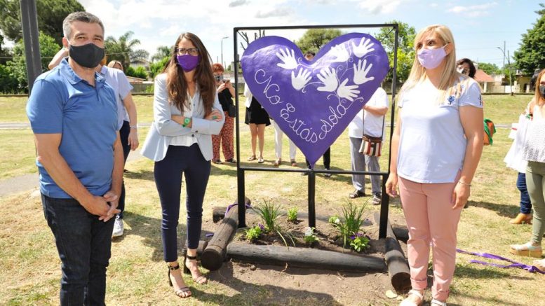 Durante la jornada, que tuvo lugar en la Casa de la Mujer de la comuna, se inauguraron un banco rojo -que simboliza la lucha pacífica contra los femicidios- y una escultura con un corazón violeta con las inscripciones “No estás sola” y “El amor no duele”. En la actividad estuvo presente la diputada nacional Florencia Lampreabe.