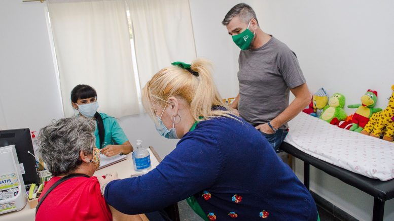 En la jornada de vacunación estuvieron presentes la secretaria de Salud del municipio, Magdalena Ragatky Caffera; y el ex secretario de Obras Públicas y actual director provincial de Auditoría y Control de Gestión del Instituto de Loterías y Casinos, Miguel Quintero.