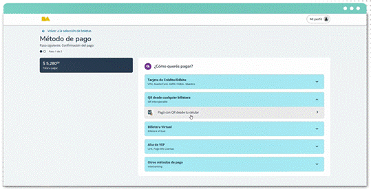 - Pulsar sobre “Pagá con QR desde tu celular”.