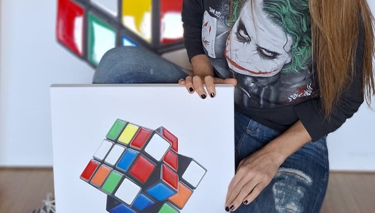 Belén Gesualdo – también conocida como Chispita -, es una artista argentina formada en la Escuela Nacional de Bellas Artes Prilidiano Pueyrredón. Con una amplia trayectoria, ha participado en numerosas exposiciones nacionales e internacionales. Sus obras integran colecciones privadas y se han exhibido en espacios como el Centro Cultural Borges, el Palacio Duhau, el Museo River Plate, la Feria MAPA en La Rural, y en muestras del Banco Ciudad. Es representante oficial de Rubik’s Argentina y colabora activamente con organizaciones benéficas como Make a Wish, Hospital Rivadavia y Fundación Paolini, entre otras.